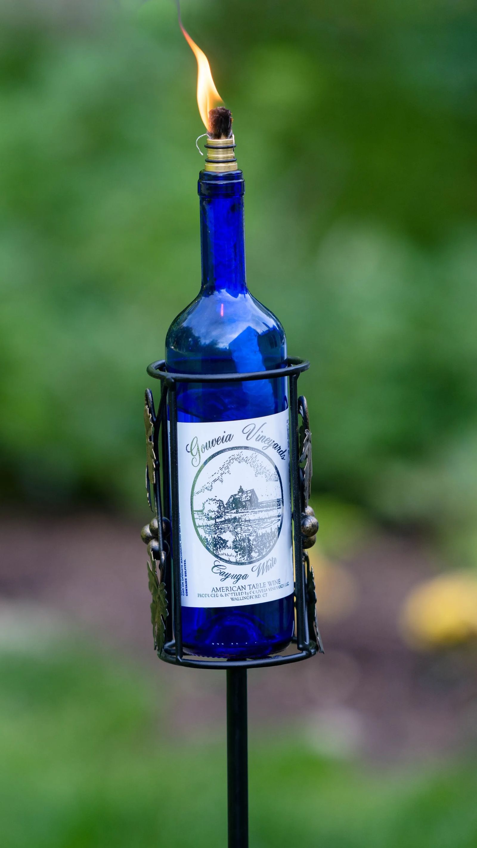 The development of our product has been over 3 years in the making. As wine enthusiasts for years, we have enjoyed searching out and trying different wines. We found that some of the bottles and labels were attractive - too nice to throw out after we finished the wine! We wanted a way to display the bottles where we and our friends could view them and came up with the idea of repurposing the bottles as torches. We purchased standard torches from a local big box store, modified them to showcase the bottles and labels, and added them to our property.
