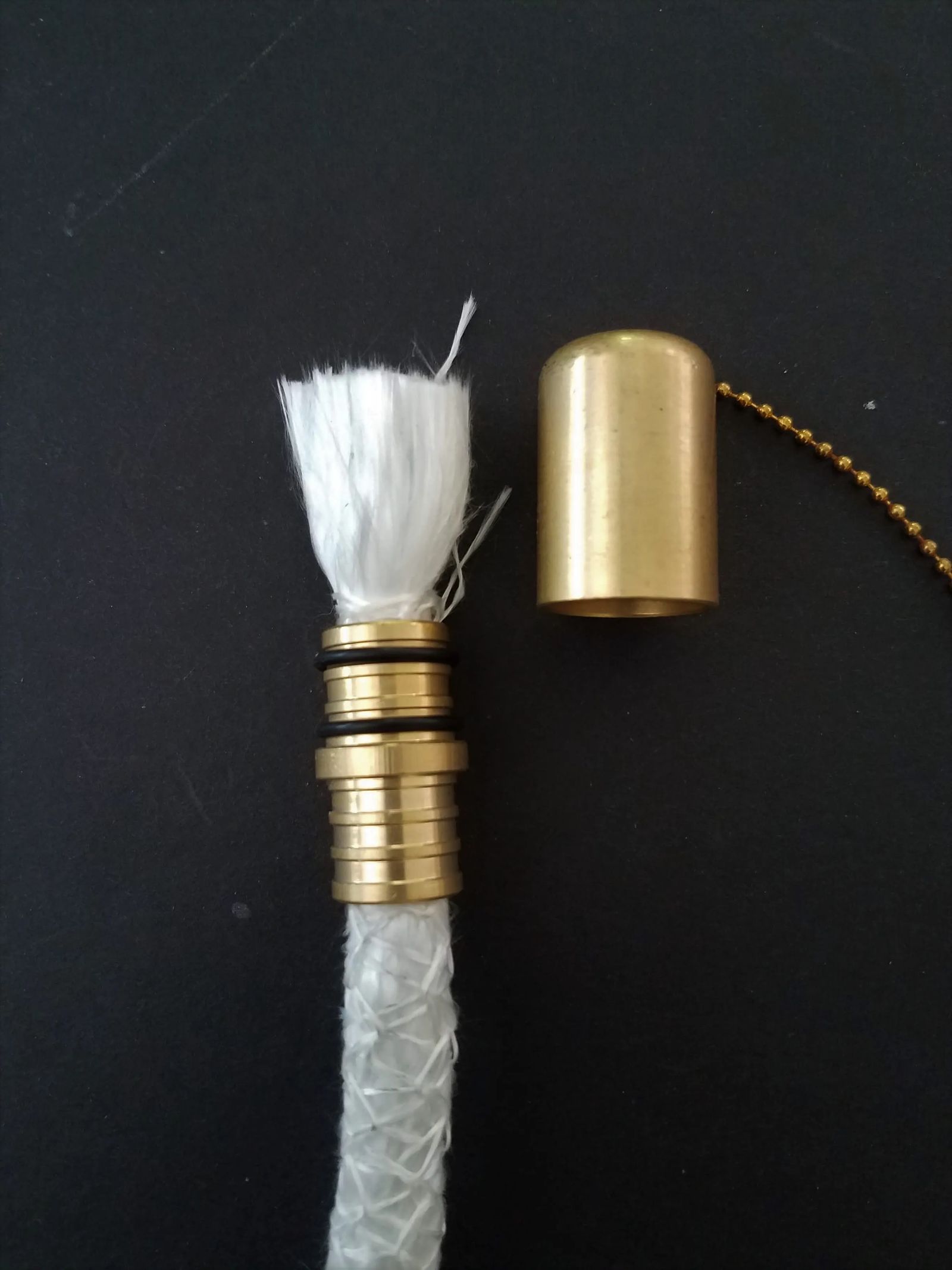 To prepare the wick for the bottle simply slide the brass plug down to the other end of the wick, then turn the wick upside-down. The wick and plug should now show as below: