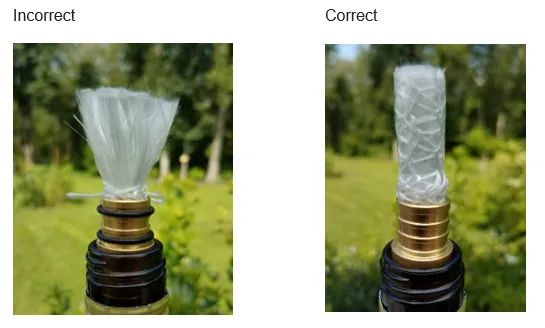 When opening the package containing the wick and cap, they appear as below (plastic covering has been removed for clarity)